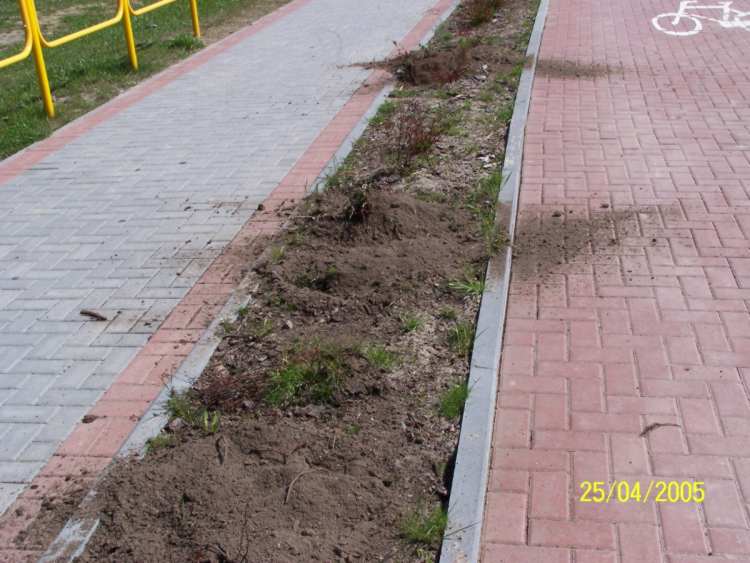 Popatrz na zamieszczone zdjęcia obok. Jakiś złodziej, biedny (umysłowo!) kradnie systematycznie, co noc po kilka kostek polbruku. Teraz potrzebne mu są kostki czerwone.