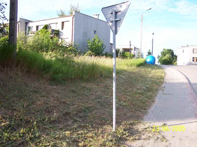 racji kronikarskiego obowiązku odnotować muszę, że dnia 23 czerwca pierwszy raz w 2005 roku koszono trawę na bezpańskich, czyli państwowych, rabatkach wzdłuż jezdni części ulic osiedla. Trawa miała już wniektórych miejscach prawie metrową wysokość! Dodać należytu także, że ci mieszkańcy, którzy dbają o wygląd swego otoczenia, koszą trawę także na państwowych rabatkach obok swoich, nie czekając na takie święto jak dziś. Po tej akcji pozostał jednak pewien niesmak, bo na przykład, dlaczego koszono tylko część trawy jak na załączonym zdjęciu? Ta pozostała to także państwowa! Kto ma to dokończyć? Odnotuję tu także drugie koszenie o ile to nastąpi.... |